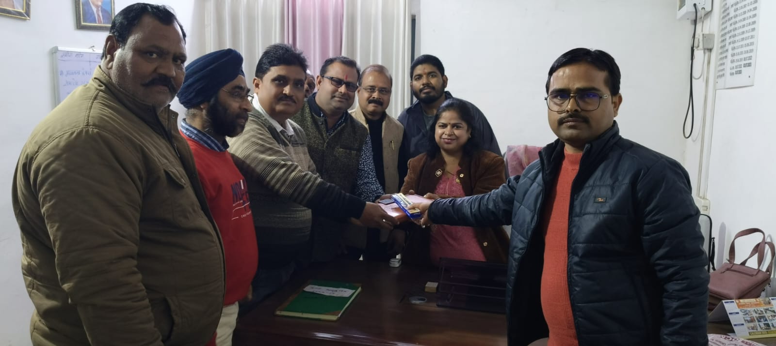 झांसी। उत्तर प्रदेश माध्यमिक शिक्षणेत्तर संघ, झाँसी के प्रतिनिधि मण्डल ने जिला विद्यालय निरीक्षक, झाँसी, संयुक्त शिक्षा निदेशक झाँसी मण्डल झाँसी एवं वित एवं लेखाधिकारी से मिलकर डायरी पैन भेंट कर नववर्ष की शुभकामनायें दीं। जिलाध्यक्ष सुभाष चन्द्र शर्मा ने शिक्षणेत्तर कर्मचारियों की लम्बित समस्याओं के निस्तारण हेतु चर्चा की। अधिकारियों द्वारा समस्याओं के शीघ्र निस्तारण का आश्वासन दिया गया।इस अवसर पर दीपक त्रिपाठी, प्रदेश उपाध्यक्ष, हरप्रीत सिंह, प्रदेश संगठन मत्री, राजेन्द्र पचौरी, मण्डलीय मंत्री, सुभाष चन्द्र शर्मा, जिला अध्यक्ष, श्यामानुज चतुर्वेदी, जिला मंत्री, ज्याउल वली कुरैशी, जिला कोषाध्यक्ष, राघव इन्दापुरकर, जिला संगठन मंत्री, रमेश आदि उपस्थित रहे।