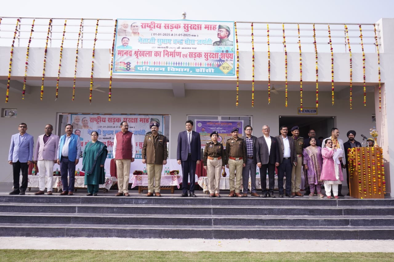 झांसी। राष्ट्रीय सड़क सुरक्षा माह, 2025 के अन्तर्गत आज नेताजी सुभाष बन्द्र बोस जी की जयन्ती के अवसर पर जनपद झाँसी में सड़क सुरक्षा जागरुकता हेतु मानव श्रृंखला एवं सड़क सुरक्षा शपथ कार्यक्रम का आयोजन झाँसी नगर के राजकीय इण्टर कालेज के मैदान में किया गया। कार्यक्रम में मुख्य अतिथि मण्डलायुक्त श्री बिमल कुमार दुबे ने वाहन दुर्घटनाओं से हाने वाली जनहानि को रोकने तथा सड़क सुरक्षा के प्रचार-प्रसार के लिए छात्र/छात्राओं को अपने अभिभावकों को जागरुक करने तथा एक श्रृंखला के रूप में जन-जन तक सड़क सुरक्षा के नियमों को पहुँचाने का आव्हान किया। उन्होने सुरक्षित सफर करने हेतु यातायात नियमों का पालन करने का संदेश देते हुये कहा कि हम सभी को सड़क पर चलते समय यातायात नियमों का पालन करना चाहिए, क्यांेकि सभी के घर पर आपका परिवार इंतजार कर रहा होता है, अतः सड़क सुरक्षा नियमों का पालन अवश्य करें। कार्यक्रम में मुख्य अतिथि मण्डलायुक्त श्री बिमल कुमार दुबे ने मानव श्रृंखला को सड़क सुरक्षा नियमों की शपथ दिलायी कि, “प्रतिज्ञा करते है कि हम सड़क पर सदैव यातायात नियमों का पालन करेंगे तथा सुरक्षित यात्रा हेतु सदैव दो पहिया वाहन चलाते समय स्वयं व पीछे बैठे व्यक्ति को बीआईएस मानक वाले हेलमेट अवश्य पहनेंगे व पहनायेंगे, चार पहिया वाहन चलाते समय हमेशा सीट बेल्ट लगायेंगे, लेन ड्राइविंग के नियमों का पालन करेंगे, तेज रफ्तार से वाहन नहीं चलायेंगे, वाहन चलाते समय मोबाइल फोन का प्रयोग नहीं करेंगे, शराब पीकर या नशें की हालत में वाहन नहीं चलायेंगे, सड़क दुर्घटना में घायल व्यक्तियों की मदद हेतु सदैव तत्पर रहेंगे। घर पर बच्चे इंतजार कर रहे है, अतः मैं सदैव सुरक्षित व सावधानी से वाहन चलाऊँगा”। विशिष्ट अतिथि पुलिस उपमहानिरीक्षक श्री केशव कुमार चौधरी, जिलाधिकारी श्री अविनाश कुमार तथा वरिष्ठ पुलिस अधीक्षक श्रीमती सुधा सिंह के द्वारा सभी छात्र/छात्राओं को सड़क सुरक्षा के नियमों के अनुपालन सम्बन्धी जानकारी दी गयी। उक्त मानव श्रृंखला एवं सड़क सुरक्षा शपथ ग्रहण समारोह कार्यक्रम, जनपद की समस्त तहसीलों में भी संबंधित उपजिलाधिकारियों, पुलिस उपाधीक्षकों के नेतृत्व में आयोजित किया गया। ब्लॉक स्तर पर भी जनपद के समस्त ब्लॉकों में परियोजना निदेशक (जिला ग्राम विकास अभिकरण), जिला पंचायत राज अधिकारी तथा संबंधित खण्ड विकास अधिकारियों के द्वारा मानव श्रृंखला का निर्माण तथा सड़क सुरक्षा शपथ ग्रहण समारोह आयोजित कराया गया। उक्त सम्पूर्ण कार्यक्रम में लगभग 8700 छात्र/छात्राओं, जनपद के सम्मानित नागरिकों के द्वारा प्रतिमाग किया गया। इस मौके पर जनपद झाँसी के बेसिक, माध्यमिक तथा उच्च शिक्षण संस्थान के 26 विद्यालयों के लगभ