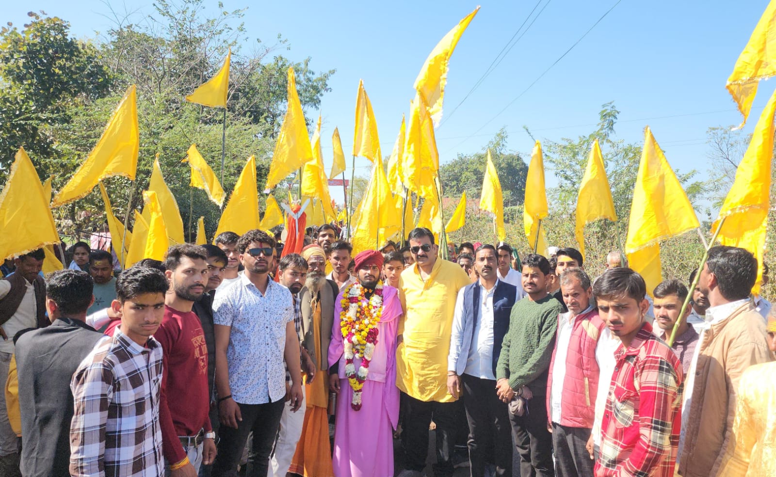 झाँसी। सिद्धेश्वर पहाड़ धाम आश्रम के नेतृत्व में भव्य ध्वजारोहण जनकल्याण पदयात्रा एवं संत मिलन समारोह का भव्य आयोजन किया गया। आयोजन को सफल बनाने हेतु भागवताचार्य अनुराग मुनि महाराज दो माह से मौन व्रत रखे हुए थे, जिनकी अगुवाई में कार्यक्रम की शुरुआत जनकल्याण पदयात्रा के साथ हुई जो सिद्धेश्वर पहाड़ धाम रसीना से प्रारंभ होकर सिद्ध बाबा धाम मड़ोर पर समाप्त हुई। इस यात्रा में मुख्य अतिथि के रूप में जनपद के प्रतिष्ठित समाजसेवी डॉ० संदीप सरावगी उपस्थित रहे। मुख्य अतिथि के आगमन पर आयोजक मंडल द्वारा माल्यार्पण एवं तिलक कर स्वागत किया गया। इस यात्रा में सिद्धेश्वर धाम रसीना क्षेत्रवासी सैकड़ो की संख्या में उपस्थित रहे। डीजे की धुन पर भक्तगण थिरकते और सनातन धर्म के गगनभेदी नारे लगाते हुए आगे बढ़ रहे थे। यात्रा के समापन पर विशाल संत मिलन समारोह का भी आयोजन किया गया। इस अवसर पर युवा संत भागवताचार्य अनुराग मुनि महाराज ने कहा इस यात्रा के माध्यम से हम लोगों को जोड़कर सनातन धर्म का प्रचार प्रसार कर रहे हैं। हम समस्त सनातन अनुयायियों से आव्हान करते हैं कि वे धार्मिक यात्राओं से जुड़कर पूरे विश्व में सनातन का परचम लहराने में सहयोग करें। इस अवसर पर संदीप नामदेव, आशीष विश्वकर्मा, अरुण पांचाल, अनुज प्रताप सिंह, बसंत गुप्ता, सुशांत गेड़ा, राकेश अहिरवार, राजू सेन, कमल मेहता, मास्टर मुन्नालाल आदि उपस्थित रहे।