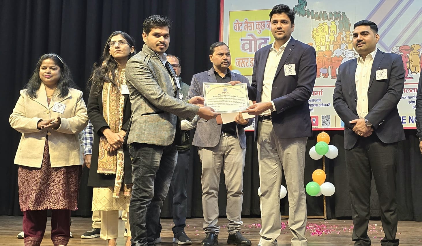 राष्ट्रीय मतदाता दिवस के अवसर पर विभिन्न स्कूलों में आयोजित हुई प्रतियोगिताओं के प्रथम एवं द्वितीय पुरस्कार प्राप्त प्रतियोगियों को प्रमाण पत्र वितरित किए गए