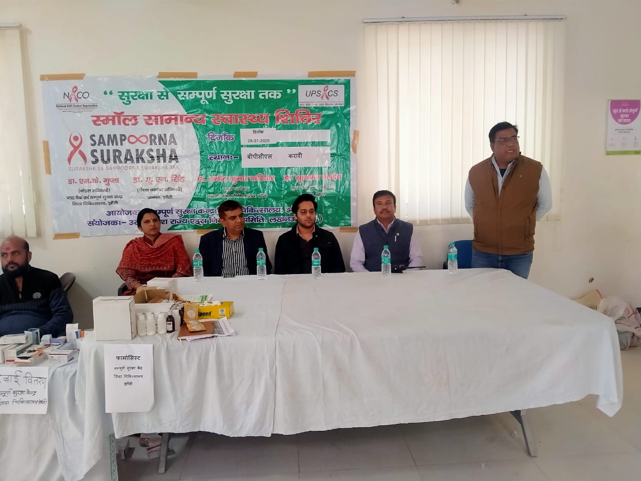 झांसी। उत्तर प्रदेश राज्य एड्स नियंत्रण सोसायटी एवं जिला क्षयरोग अधिकारी के निर्देशन में और डॉ० एस के गुप्ता नोडल अधिकारी के मार्गदर्शन में सम्पूर्ण सुरक्षा केंद्र जिला चिकित्सालय झांसी द्वारा पूर्व नियोजित योजना के तहत एक स्मॉल शिविर का आयोजन बीपीसीएल करारी झाँसी मे किया गया। इस स्मॉल शिविर का शुभारंभ डॉ० अंशुमान तिवारी उप जिला क्षयरोग अधिकारी झाँसी एवं कैप्टन सचिन रावत जी के द्वारा किया गया।  कार्यक्रम का संचालन रूपेश नामदेव जिला कार्यक्रम समन्वयक द्वारा किया गया। सर्वप्रथम उपस्थित सभी अतिथियों का ग्रीन वेलकम किया गया। डॉ० अंशुमान तिवारी उप जिला क्षयरोग अधिकारी द्वारा एचआईवी/एड्स के बारे मे ज्यादा से ज्यादा लोगों के बीच जागरूकता फैलाने को लेकर चर्चा की गई। साथ में स्मॉल शिविर का प्रवासियों एवं ट्रॅकर्स को ज्यादा से ज्यादा सेवाओं का लाभ उठाने की बात की। रितु पाण्डेय दिशा क्लस्टर द्वारा एचआईवी/एड्स जैसी स्थिति से बचने के लिए चार कारणों एवं बचाव के बारे मे आम जनमानस को जागरूक करने की बात की और उपस्थित सभी सहभागियों को बताया है कि लक्षित उद्देश्यों की प्राप्ति हेतु कार्य को गति देना है जिसके लिए बेहतर नियोजन हो। ताकि ज्यादा से ज्यादा लोगों को जागरूक किया जाए एवं एचआईवी/एड्स जैसी स्थिति से लोगों को बचाया जा सकें और साथ में मीडिया के माध्यम से भी एचआईवी/एड्स के बारे मे आम जनमानस को जागरूक करने के लिए प्रेरित किया। रूपेश नामदेव जिला कार्यक्रम समन्वयक ने उपस्थित सभी सहभागियों को समय से जांच करने के क्या क्या फायदे होते है एवं सम्पूर्ण सुरक्षा केंद्र क्या करता है इसको लेकर विस्तार से बताया। और एक दूसरे को जागरूक करने के लिए प्रेरित किया। शैलेन्द्र यादव (दिशा यूनिट झाँसी) ने स्मॉल शिविर के उद्देश्य क्या है इसको लेकर आम जनमानस को बताया साथ मे एचआईवी ऐक्ट 2017 के बारे मे भी बताया गया। डॉ० राज निधि स्वास्थ्य केंद्र प्रभारी अम्माबाय ने बताया कि कोई भी व्यक्ति पाज़िटिव हो जाता है उसकी गोपनीयता रहती है पर उसको ये ध्यान रखना चाहिए की उसके द्वारा किसी दूसरे को इन्फेक्शन न हो। इसके लिए उसको बचाव करना है इस शिविर के माध्यम से अतिथियों एवं डॉक्टर को मिमेन्टो वितरित किए गए। इस स्मॉल शिविर के माध्यम से लोगों को एचआईवी, हेपटाईटस बी/सी, सुगर की जांच, ब्लड प्रेशर, परिवार नियोजन,टी०बी० स्क्रीनिंग, एचआईवी परामर्श, एवं डॉक्टर के परामर्श अनुसार दवाइयों का वितरण किया गया। इस स्मॉल शिविर मे प्राथमिक स्वास्थ्य केंद्र अम्माबाय से देविंद्र, राजेन्द्र,मयंक तिवारी, लोकेश, ऊषा जी, टीबी अस्पताल से आशीष अग्रवाल, गोविंद्र, टी०आई० स्टाफ परमार्थ समाज सेवी संस्थान से दीप्ति एवं नीतेश, सम्पूर्