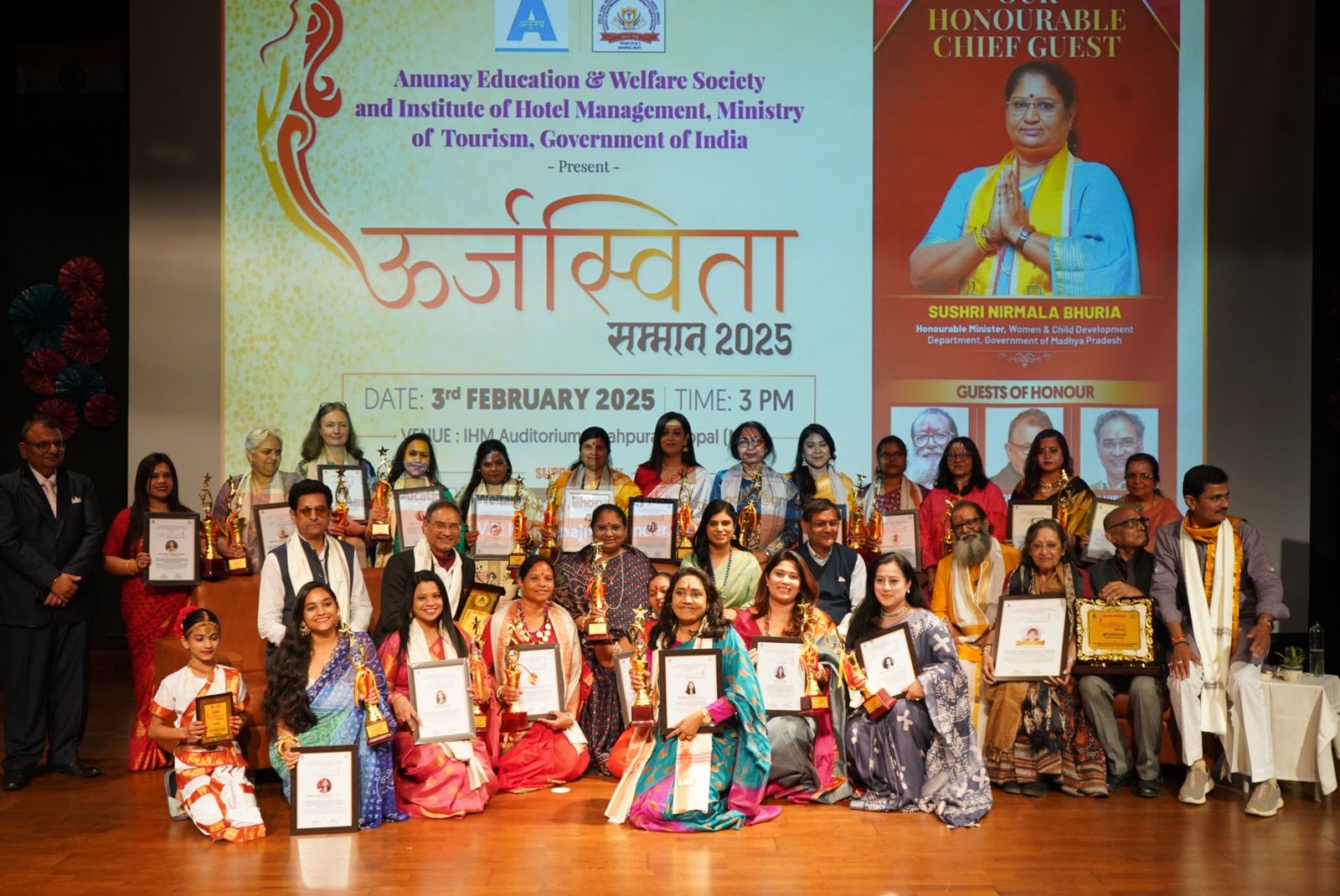 भोपाल। महिलाएं हर क्षेत्र में आगे बढ़ रही हैं। चाहे समाजसेवा हो या व्यापारिक क्षेत्र, नारी शक्ति अपनी पूरी ऊर्जा से काम करती है। इस कारण उन ऊर्जस्विताओं को समय-समय पर सराहा भी जाना चाहिए। देश और समाज को आगे बढ़ाने वाली नारी शक्ति जब सम्मान पाती है तो दूसरी महिलाएं भी प्रेरित होती हैं। इस तरह के आयोजन सार्थक होते हैं। यह उद्गार राजधानी भौपाल के आईएचएम ऑडिटोरियम में आयोजित ऊर्जस्विता सम्मान समारोह के दौरान प्रदेश की महिला एवं बाल विकास मंत्री निर्मला भूरिया ने सोमवार को व्यक्त किए। उन्होंने कहा कि मैं खुद वर्षों से प्रदेश के आदिवासी क्षेत्र का प्रतिनिधित्व कर रही हूं। महिला किसी भी क्षेत्र में अपना मुकाम हासिल करती है तो वह उसे अपने परिश्रम से हासिल करती है। वह लड़ना जानती है। ग्रामीण और आदिवासी क्षेत्रों में पर्यावरण, लोक कला, महिला सशक्तिकरण के लिए कई महिलाएं खामोशी से सार्थक कार्य कर रही है। इसे समाज को सामने लाना, उचित सम्मान देना सभी की जिम्मेदारी है। इसका निर्वहन अनुनय सोसायटी पूरी तन्मयता से कर रही है। अनुनय एजुकेशन एंड वेलफेयर सोसायटी ने भारतीय होटल प्रबंधन एवं खानपान संस्थान के साथ मिलकर 26 महिलाओं को ऊर्जस्विता सम्मान से सम्मानित किया। इस अवसर पर प्रफुल्लित तीर्थ के पीठाधीश स्वामी मनेश्वरानंद जी, छत्तीसगढ़ के पीसीसीएफ (वाइल्ड लाइफ) सुधीर अग्रवाल, आईएचएम के प्राचार्य डॉ. रोहित सरीन, रिटायर्ड आईएफएस अधिकारी डॉ. एके भट्टाचार्य, विभांशु जोशी, अजय देवनानी, ब्रजेश चौहान मौजूद थे। सोसाइटी की अध्यक्ष माही भजनी ने बताया कि बालाघाट में बैगा समुदाय के विकास में अपना योगदान देने वाली मार्गी वॉट्स कार्टर को लाइफटाइम अचीवमेंट पुरस्कार से सम्मानित किया गया। इन्हें किया सम्मानित- डॉ अनामिका जैन- उच्च शिक्षा ( इंदौर), डॉ पल्लवी तिवारी – विज्ञान एवं प्रौद्योगिकी (यूएस), सुश्री संप्रिया पूजा- लोकनृत्य एवं गायन, (छत्तीसगढ़), डॉ वंदना अग्रवाल -स्कूल शिक्षा ( छत्तीसगढ़), सुश्री ओरियल प्रिज़मैन – संरक्षण (यूके), डॉ आरती सिन्हा- साउंड हीलर एवम वेलनेस कोच, सुश्री चंद्रकला परस्ते- जनजातीय संस्कृति (डिंडोरी), सुश्री प्रभाकर खलको- प्रशासन (छत्तीसगढ़), सुश्री मेघा मुक्तिबोध- शिक्षा, सुश्री मनीषा आनंद- मिसेज़ इंडिया, सुश्री शोमिता भट्टाचार्य- पर्यावरण, (इंदौर), सुश्री रोली शर्मा, विपणन पेशेवर (नई दिल्ली), सुश्री आशा पठानिया- सत्कार उद्योग (हरियाणा), सुश्री दिव्या अत्रि- समाज सेवा, सुश्री भूमिका कलम- ज्योतिष (इंदौर), सुश्री अंजु तड़ियाल – कौशल विकास, सुश्री दक्षा वैदकर- प्रिंट मीडिया, सुश्री हुमेरा ख़ान – सामाजिक उद्यमी, सुश्री श्रुति सिंह – राजनीति, सुश्री विशाखा कवठेकर- आर्किटेक्ट, सुश्