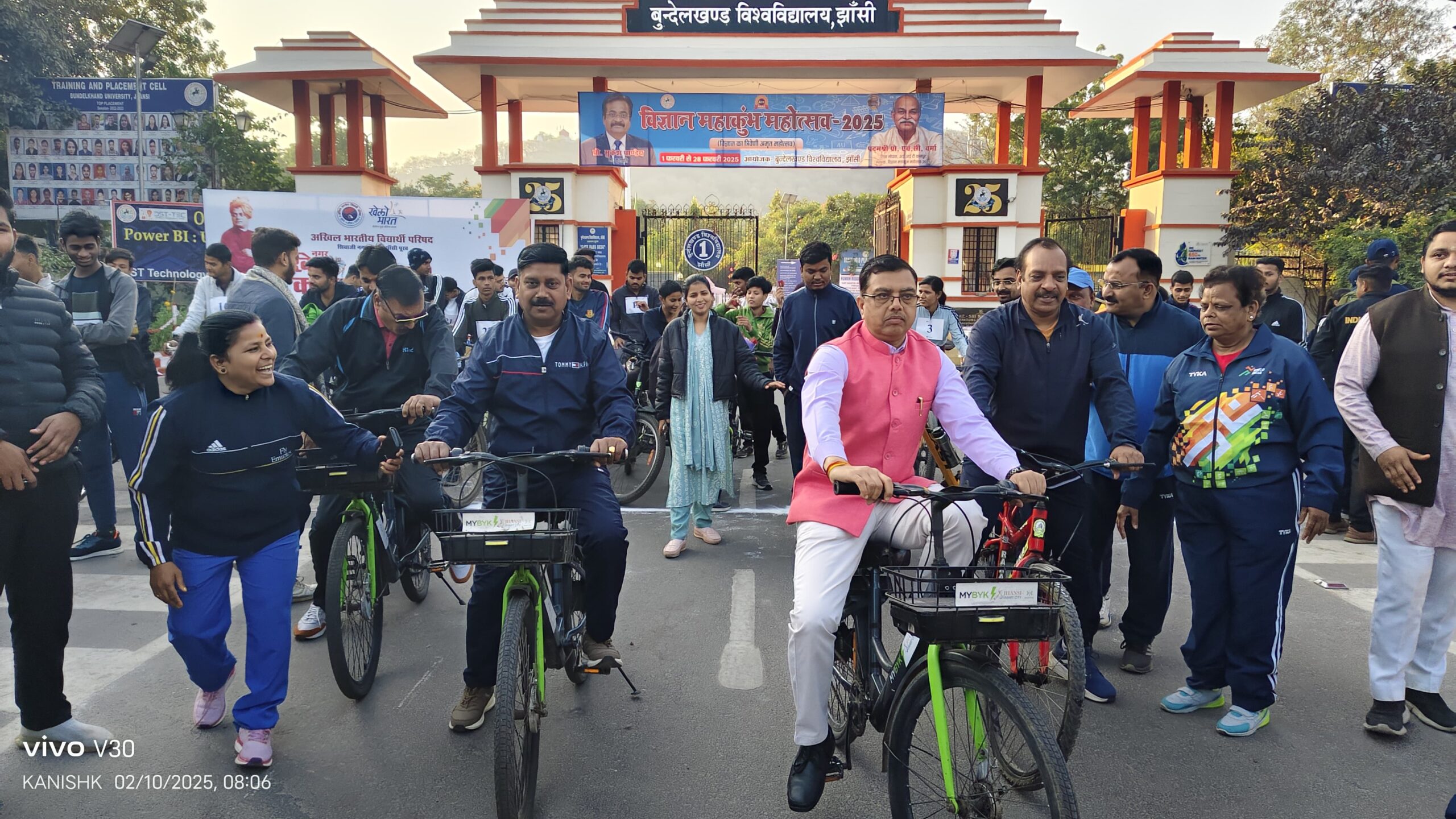 झांसी । अखिल भारतीय विद्यार्थी परिषद झांसी पूरब जिले की शिवाजी नगर इकाई के द्वारा बुंदेलखंड विश्वविद्यालय में नगर खेल कुंभ आयोजित किया गया जिसके अंतर्गत साइकिल मैराथन का आयोजन बुंदेलखंड विश्वविद्यालय से ओरक्षा धाम तक किया गया जिसमें मुख्य रूप से एबीवीपी के प्रांत अध्यक्ष डॉ. ब्रजेश मिश्रा व क्षेत्रीय उच्च शिक्षा अधिकारी प्रो. सुशील बाबू ने साइकिल मैराथन को हरी झंडी दिखा कर रवाना किया। प्रो. सुशील बाबू ने कहा कि अखिल भारतीय विद्यार्थी परिषद द्वारा विद्यार्थियों को तनावमुक्त रखने का यह बहुत अच्छा प्रयास है इससे छात्र शारीरिक दक्षता के साथ – साथ मानसिक रूप से मजबूत होगा। आगे प्रांत अध्यक्ष डॉ. ब्रजेश मिश्रा ने बताया कि एबीवीपी द्वारा फरवरी माह में खेलो भारत के माध्यम से नगर खेल कुंभ आयोजित किया जा रहा है जिसमें मिट्टी से जुड़े खेल जो विलुप्त हो गए ऐसे खेलो को बढ़ावा दिया जा रहा है। इस मौके पर अभाविप कानपुर प्रांत मंत्री शिवा राजे बुंदेला, राष्ट्रीय कार्यकारिणी सदस्य हर्ष शर्मा, विभागाध्यक्ष डॉ. राजीव कुमार बबेले, महानगर खेलो भारत प्रमुख डॉ गिरजा सिंह, प्रांत सह मंत्री हर्ष जैन, इकाई अध्यक्ष विहान सिंह व इकाई मंत्री शुभम चतुर्वेदी सहित प्रीतिका, खुशबू, सूर्य प्रताप, कनिष्क, डॉ. सपना, डॉ विनोद, डॉ यशपाल इत्यादि उपस्थित रहे।