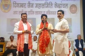 नई दिल्ली — दिगम्बर जैन महासमिति केन्द्राचल द्वारा रविवार, 06 अप्रैल 2025 को एन.डी.एम.सी. कन्वेंशन सेंटर, नई दिल्ली में स्वर्ण जयंती महोत्सव का भव्य और ऐतिहासिक आयोजन परम पूज्य बालयोगी आचार्य श्री 108 सौभाग्य सागर जी महाराज के दिव्य सानिध्य में सम्पन्न हुआ।