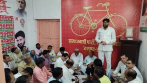 समाजवादी पार्टी जिला कार्यकारिणी की मासिक बैठक को सम्बोधित करते हुए मुख्य अतिथि पूर्व विधायक सतीश जतारीया ने कहा कि भाजपा की जनविरोधी नीतियों किसानो, दलितों, पिछड़ों व अल्पसंख्यकों के दमन के कारण सभी वर्गाें के लोग पुनः अखिलेश यादव की सरकार बनाना चाहते हैं। अर्थव्यवस्था चरमरा गयी है। विकास के नाम पर आज तक कोई काम नहीं है। नौकरी के नाम नौजवानों को भ्रमित करने के लिए झूठ बोला जा रहा है। अध्यक्षता कर रहे जिलाध्यक्ष बृजेन्द्र सिंह भोजला ने कहा कि पार्टी के निष्ठावान कार्यकर्ता ही पार्टी की रीढ़ होते है हम सभी को मजबूती के साथ अपने अपने बूथ पर कार्य करना है । इस अवसर पूर्व मंत्री अजय सूद, पूर्व जिलाध्यक्ष सुदेश पटेल, पूर्व महानगर अध्यक्ष मिर्जा करामत बेग, श्रीमती दीपाली रायकवार, सलीम खानजादा, विजय झासिया, नीरज अग्रवाल, डा वीरेंद्र यादव, विश्व प्रताप सिंह, बाबू लाल, विकास चौरसिया, यादव, अमित यादव, मेजर विजय चौरिया, यश वर्मा, आरिफ खान, अजय झासिसा, पं सतेन्द्र पुरी गोस्वामी, आमिर खान,मोहर सिंह राठौर, श्याम सुंदर राजपूत, उत्तम राजपूत, महिपत झां, राधेश्याम, कैलास कोरी, संदीप वर्मा, मुबारक अली, दीपेंद्र सिंह, आशीष पटेल सहित अनेक कार्यकर्ता मौजूद रहे। संचालन जिला महासचिव राधे लाल बौद्ध ने किया।