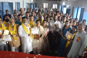 झाँसी – . सर्वपल्ली राधाकृष्ण पूर्व राष्ट्रपति के जन्मदिवस के रूप में मानने वाले शिक्षक दिवस की पूर्व संध्या पर एम.एस.राजपूत इंटर कॉलेज परिसर प्रेमनगर नगरा में आयोजित शिक्षक सम्मान समारोह में मुख्य अतिथि डॉ.बाबूलाल तिवारी शिक्षक विधायक”प्रयागराज-झाँसी खंड क्षेत्र” व अति विशिष्ट अतिथि श्रीमती रमा आर.पी.निरंजन एम.एल.सी. झाँसी-ललितपुर-जालौन तथा विशिष्ट अतिथि श्रीमती शिवांगी प्रणय मुदगिल ने 151 शिक्षको को शिक्षा के क्षेत्र में विशेष उत्कृष्ट कार्य करने के लिए उन्हें दक्षता पुरुस्कार का प्रशस्ति पत्र व स्मृति चिन्ह देकर सम्मानित किया एवं कार्यक्रम की अध्यक्षता पं.मैथिलीशरण मुदगिल वरिष्ठ समाजसेवी ने की। सर्वप्रथम प्रमुख अतिथियो ने माँ सरस्वती जी एवं डॉ.एस.राधा कृष्णन जी की प्रतिमा पर माल्यार्पण किया उसके पश्चात दीपप्रज्जलन कर कार्यक्रम का शुभारंभ हुआ। कार्यक्रम में अतिथि के रूप विद्यालय प्रबंधक ठा.अरुण सिंह,रामआसरे गुप्ता वरिष्ठ समाजसेवी,आनंद कुमार सक्सेना चीफ वार्डेन नागरिक सुरक्षा कोर झाँसी,अनिल तिवारी आदि लोग उपस्थित रहें। कार्यक्रम में मुख्य अतिथि डॉ.बाबूलाल तिवारी शिक्षक विधायक”प्रयागराज-झाँसी खंड क्षेत्र” व अति विशिष्ट अतिथि श्रीमती रमा आर.पी.निरंजन एम.एल.सी. झाँसी-ललितपुर-जालौन तथा विशिष्ट अतिथि श्रीमती शिवांगी प्रणय मुदगिल सहित अतिथियों को माला पहनाकर एवं बेच लगाकर स्वागत सम्मान ऋषभ सिंह,रोहन सिंह,वैभव सिंह,ए. सलीम खान,नजाकत अली हाशमी ने किया उसके पश्चात संबोधन में डॉ.बाबूलाल तिवारी शिक्षक विधायक ने कहा कि गुरु समाज का पथप्रदर्शक होता है वह बच्चों को ज्ञान के साथ जीवन जीने की कला भी सिखाता है ने कहा कि शिक्षक रूपी गुरु बाल अवस्था के उपरांत जब बच्चे की उम्र शिक्षा ग्रहण करने की होती है तो उसको पाठशाला में भेज दिया जाता है। वहां ना सिर्फ शिक्षा बल्कि व्यावहारिक ज्ञान, नैतिकता, जैसे जीवन के प्रत्येक पहलू पर ध्यान देते हुए, बालक को निखारा जाता है। तब माता पिता के साथ साथ एक शिक्षक अथवा अध्यापक की भूमिका गुरु रूप में होती है। एक शिक्षक अपने जीवन के अन्त तक विशेष मार्गदर्शक की भूमिका अदा करते है। वर्तमान समाज मे अपने जीवन व्यापन करने के लिए शिक्षा बहुत उपयोगी है जो भी हमें गुरु द्वारा प्रदान की जाती है व श्रीमती रमा आर.पी.निरंजन विधान परिषद सदस्य ने कहा कि कि जीवन में सभी रिश्ते अनमोल होते हैं, लेकिन माता पिता का स्थान गुरु रूप में अहम योगदान देता है जिसमें मां हमारी प्रथम गुरु होती है। वह हमारा दुनिया से साक्षात्कार करवाती हैं। माता पिता हमें सबसे ज्यादा प्रेम निस्वार्थ भाव से करते हैं जो हमारा पालन पोषण तथा जीवन प्रणाली की संरचना करते है। प्राचीन क