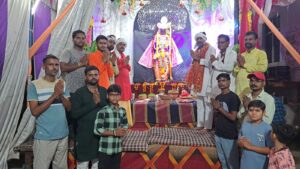 समथर झांसी, शारदीय नवरात्र के पावन अवसर पर नगर पालिका कन्या विद्यालय के पास मां सिंहवाहिनी की पंचम दिवस की झांकी पर मातारानी को श्री रामलला सरकार के रूप में बिराजमान किया गया। नगर पालिका अध्यक्ष देवेंद्र सिंह कंसाना द्वारा मातारानी की आरती की गई। श्रीश्याम नवयुवक कमेटी द्वारा मनोज कुमार गुप्ता,पवन बुलकिया,गुर्जर महेन्द्र नागर,पार्षद अरविंद श्रीवास, पार्षद प्रतिनिधि संतोष नीखरा,कासिम खान,मुन्ना मेवाती का तिलक लगाकर स्वागत किया गया।उक्त अवसर पर श्रृंगारकर्ता समीर नीखरा,नरेंद्र बादल,बलवीर यादव,सोनू नामदेव,रघु लोहिया,अनिल प्रजापति,तरुण गुप्ता,दीपक वर्मा,रामराजा तिगनाथ,विशाल साहू,मनोज पाल,प्रिंस,बंश,शिवाकांत पांचाल,राज नामदेव,सूरज पांचाल,प्रसून शर्मा,देवांशु गुप्ता,अंशुल प्रजापति,ध्रुव गुर्जर मानवेंद्र सिंह सहित मातृशक्ति एवं भक्तजन उपस्थित रहे