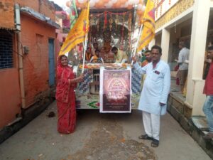 समथर (झांसी)- आज नगर समथर में श्रद्धालु भक्तों ने गाजे बाजे के साथ बड़े धूमधाम से खाटूश्यामजी महाराज की निशान यात्रा निकाली। खाटूश्याम महाराज की निशान यात्रा का शुभारंभ धनुषधारी सरकार व हनुमान जी महाराज के मंदिर से किया गया।पं शास्त्री जी ने विधि-विधान से पूजा अर्चना व आरती कर खाटूश्याम महाराज की निशान यात्रा का शुभारंभ किया। निशान यात्रा धनुषधारी सरकार व हनुमान जी महाराज के मंदिर से महाराजा छतरी चौराहा, चौपड़ बाजार, अग्गा बाजार नगर में आदि जगह से होते हुए निकाली गई। इसके उपरांत नगर में आदि जगह घूमते हुए पुनः मंदिर में पहुंची जहां निशान यात्रा का भगवान खाटूश्यामजी महाराज की आरती कर समापन किया गया। आरती कर सभी श्रद्धालु भक्तों ने जयकारा लगाया और भगवान खाटूश्याम महाराज के भव्य स्वरूप के दर्शन किए और उन्हें चरण वंदन कर आशीर्वाद प्राप्त किया। इसके पश्चात प्रसाद वितरण किया गया। सभी श्रद्धालु भक्तों ने प्रेम सहित प्रसादी ग्रहण की। नगर में निशान यात्रा जहां जहां से निकली श्रद्धालु भक्तों ने प्रेम सहित भगवान खाटूश्याम महाराज का पुष्प बरसाकर स्वागत किया।व आरती कर जयकारा लगाया। वहीं नगर पालिका अध्यक्ष देवेंद्र सिंह कंसाना एव मनोज गुप्ता रेखा गुप्ता . ने भी निशान यात्रा में सम्मिलित होकर खाटूश्याम महाराज की आरती कर जयकारा लगाया। और भव्य स्वरूप के दर्शन कर उनके चरण वंदन कर आशीर्वाद प्राप्त किया। नगर में जगह जगह श्रद्धालु भक्तों ने फल मिष्ठान आदि का प्रसाद वितरण किया । निशान यात्रा में सम्मिलित श्रद्धालु महिलाएं व श्रद्धालु भक्त भगवान की भक्ति मग्न होकर भगवान के गीतों व भजनों में खूब झूमे नाचे और भगवान खाटूश्याम का जयकारा लगाया। भगवान की निशान यात्रा में बहुत से श्रद्धालु भक्त सम्मिलित रहे। निशान यात्रा कार्यक्रम समापन होने के उपरांत खाटूश्याम श्रद्धालु भक्तों ने आभार व्यक्त करते हुए कहा कि 3 तारीख को नगर में स्थित राममूर्ति गार्डन बल्लन की लोज में खाटूश्याम महाराज का भव्य दरबार लगाकर जगराता कार्यक्रम का आयोजन किया जाएगा। जिसमें भजन संध्या कार्यक्रम में वाहर से आये महान गायिका के द्वारा कार्यक्रम किया जायेगा।